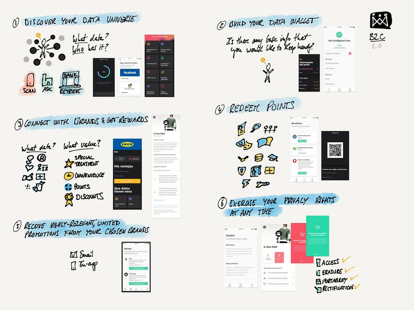 A year later, while still closing the sale of our seven-year-old company (a Software as a Service provider in the Marketing Data Analytics space), a core group of long-time colleagues joined me in the new adventure. PrivacyCloud was born as an umbrella “Privacy-First Cloud” that would give shelter to various pieces of software in a new Customer-centric stack. BBVA (one of Europe’s largest banks) became a partner and lead investor a few months later*, with WeRule, our first C2B app, seeing the light right after. Prototypes for what we called a Customer Data Hub, a Zero-Party Data Activation Studio, and a PCloudID (connecting pieces on the advertiser/retailer and publisher sides) eventually followed.
